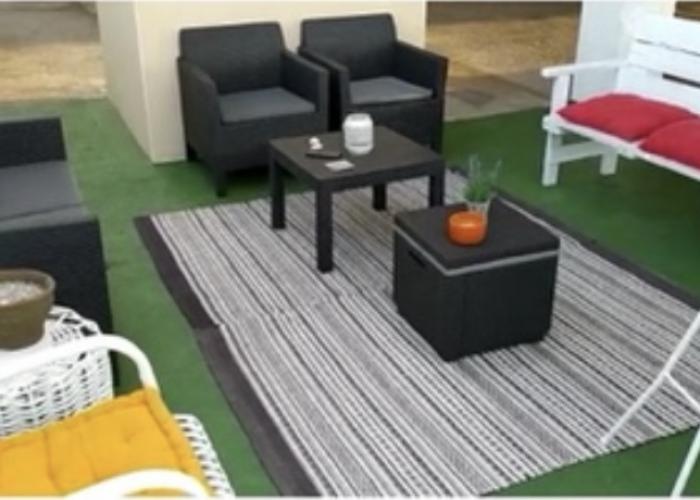 La comunidad parte de una zona chill-out con césped artificial , lucecitas que dan un ambiente veraniego para poder tomar un refresco con amigos o los propios vecinos, y plazas de parking comunitario.